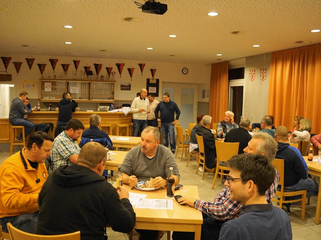 Harald Kuhn und Steffen Müller konnten die 30, meist auswärtigen Kartenspieler, begrüßen. Das Vereinsheim war damit gut gefüllt. Nach dem wir die Gäste begrüßt hatten, die Regeln besprochen und alle versorgt waren, konnten wir mit dem Binokelspiel beginnen. Gespielt wurde an 10 Tischen mit jeweils 3 Personen, zu 3 Runden a 12 Spiele. Jede Runde wurde neu ausgelost.