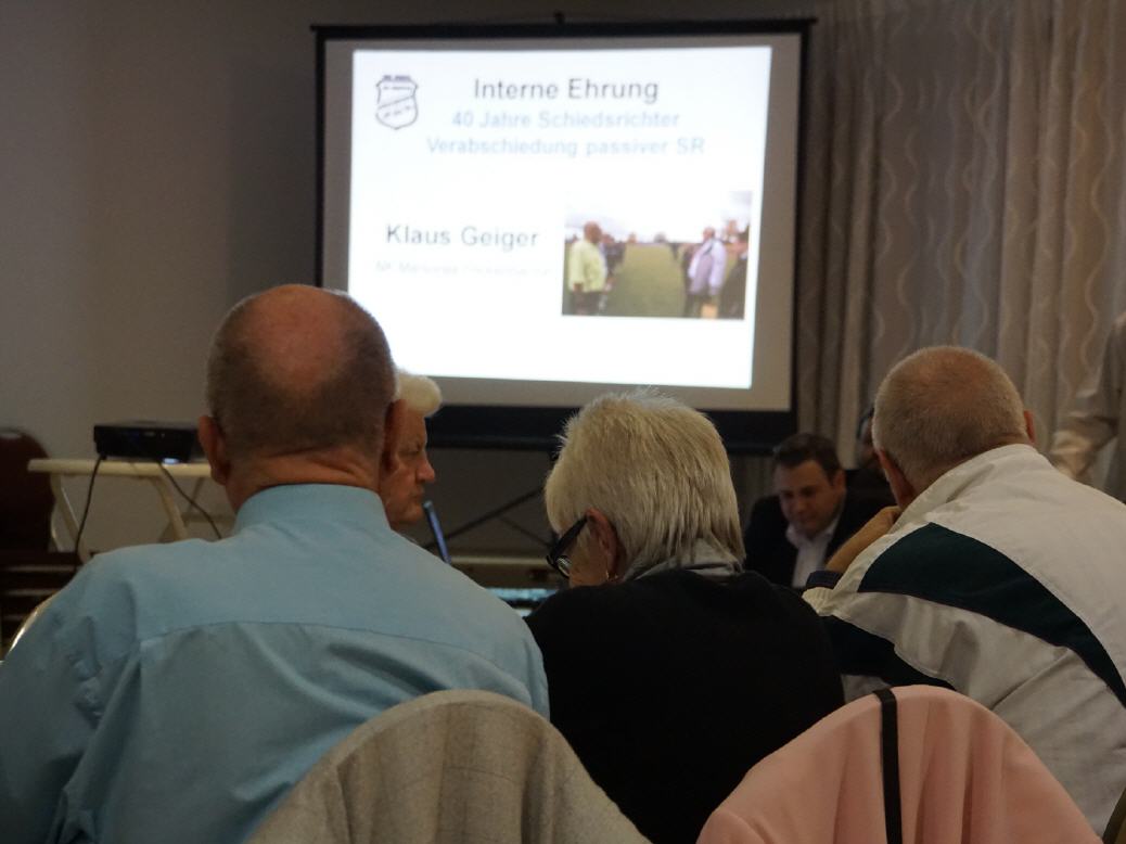 Wie immer erfolgte zuerst die Begrüßung der Ehrengäste, sowie aller weiteren Gäste und die Teilnehmer der Schulung durch unseren Obmann Harald Kuhn. Im direkten Anschluss gab es dann die Ehrung von Klaus Geiger, verbunden mit der Verabschiedung in den passiven SR Status.