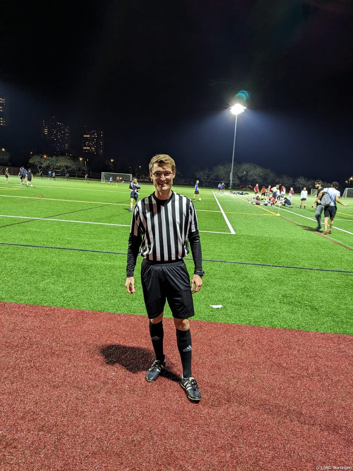 Die Hobbyliga ist eine UMass interne Liga. Montag bis Donnerstag treten jeden Abend in bis zu 15 Spielen á 2x20min die Mannschaften bestehend aus Studenten auf Kompaktspielfeld gegeneinander an. Die Mannschaften sind dabei bunt gemischt: Männer, Frauen, Bachelor- und teilweise auch Masterstudenten spielen alle zusammen. Ähnlich wie beim Futsal pfeifen immer zwei Schiedsrichter gemeinsam ein Spiel. Die Regeln sind etwas vereinfacht, so gibt es z.B. kein Abseits. Manchmal lässt mich der Eindruck nicht los, dass dies vor allem den nicht optimal ausgebildeten Schiedsrichtern dient. Mein Kollege am ersten Abend – Mike, Baseballkappe rückwärts, das Trikot lose aus der Hose und die Pfeife als Kautabakersatz – strahlte zwar nicht regeltechnische Expertise aus, stellte sich aber als super sympathischer Typ heraus, der meine Pfiffe mit ‚Nice call m’brother!‘ zu kommentieren wusste. Das Erste, was mir auffiel, war die faire Spielweise und der Umgang mit SR-Entscheidungen. Während ich es aus der Heimat gewohnt war, ständig für meine Entscheidungen in Frage gestellt zu werden, wurde hier fast alles kommentarlos akzeptiert. Auch der Umgangston mit der gegnerischen Mannschaft war bisher stets sehr freundlich. Bei Fouls wurde dem Gegner aufgeholfen und Streitigkeiten gab es keine Erwähnenswerten. Klar – es ist eine Hobbyliga, bei der der Spaß im Vordergrund steht, daran wird es wohl liegen… Tatsächlich gibt es noch einen weiteren Grund, denn die Uni möchte negatives Verhalten im Keim ersticken und hat einige kuriose Regeln eingeführt um das umzusetzen. Persönliche Strafen, sowie der Gesamteindruck des SR führen nach jedem Spiel zu einer Fairnessnote. Bei Nichterreichen einer bestimmten Durchschnittsnote zur Winterpause wird die Mannschaft vom Spielbetrieb zurückgezogen. Jede Grätschte am Mann führt automatisch zu einer VW und einem Strafstoß. Verrückt, ich weiß. Erhält ein Spieler eine VW muss er sofort ausgewechselt werden und sollte eine Mannschaft innerhalb eines Spiels drei Gelbe Karten erreichen führt das außerdem zu einem automatischen Spielabbruch. Während ich diese Sonderregeln anfangs belächelte (schließlich war ich ja als erfahrener deutscher SR hierhergekommen), lernte ich sie nach und nach sehr zu schätzen. Der Umgang der Spieler miteinander ist durchweg super, weil die Konsequenzen für schlechtes Verhalten zu groß sind. Und auch wenn das spielerische Niveau nicht zum Staunen anregt, macht es mir riesigen Spaß hier zu pfeifen. Und so werde ich wohl auch in den kommenden Wochen das schwarz-weiß gestreifte Trikot überziehen und bin gespannt, was es sonst noch für mich zu lernen gibt. Bis dahin sage ich Sayonara – there is more to come.