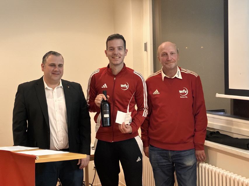 Ein besonderer Höhepunkt des Abends war die Ehrung langjährig aktiver Schiedsrichter, die sich über viele Jahre hinweg mit großem Engagement für das Schiedsrichterwesen eingesetzt haben. Für 10 Jahre Tätigkeit an der Pfeifewurden geehrt: